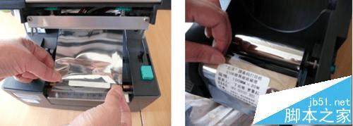 2、按照图中表示的箭头方向双手用力按住打印机上然后向上翻开,就可以打开条码打印机的保护上盖。