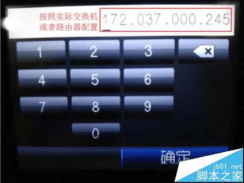 3、选择手动后,会出现一个输入IP地址的界面,在这里大家可以根据各自局域网的具体配置来选择合适的IP地址分配给打印机。