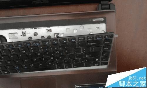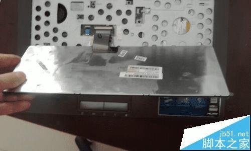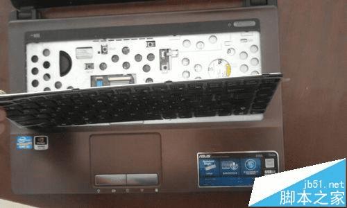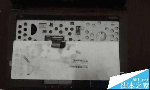 7、撬开之后,轻轻地将键盘向上抬起来,抬的时候,只抬键盘的上部分,下部分尽量不要悬空,以防止把键盘的数据线扯坏。