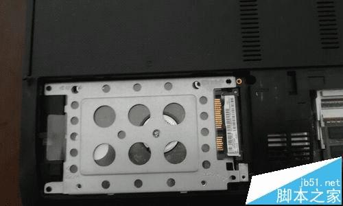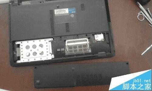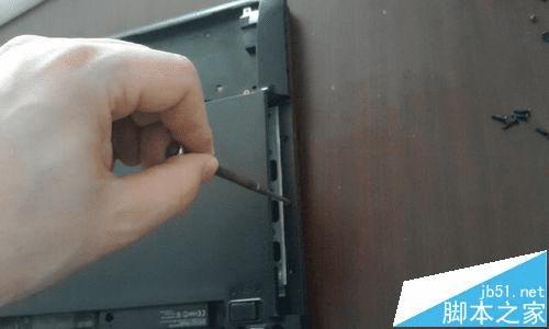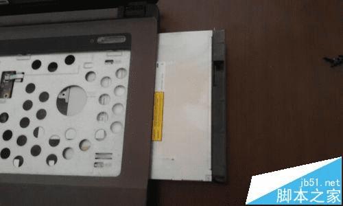 11、把电脑翻过来背面朝上,在刚才抽走的光驱这个框架这里,有一个很细小的螺丝,把它也拧下来。