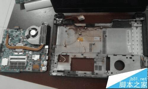 13、撬开后,把上壳拿到一边。笔记本的主板就完全的裸露出来了。这里,我们把主板上的螺丝也拧下来。