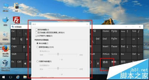 3、如果需要数字小键盘,等其它配置按键,可以点击“选项“在其中勾选配置。