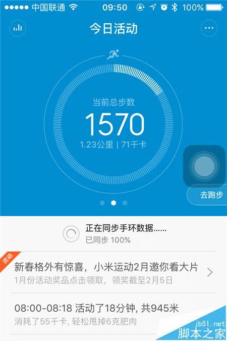 5、连接成功以后,就可以看到当天行走的步数,在下方有每一次行走的记录,包括行走的步数和时间。