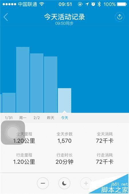 7、默认的是按照天数排列的,也可以在底部选择按照周或者月来排列,让我们更加详细的了解我们每天的运动量。
