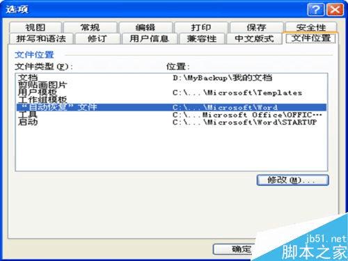 3、双击“自动恢复”文件弹出修改位置对话框,在该对话框查找范围中找到备份文件的路径点击确定即可。