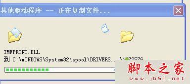 5、此时点击该窗口的[浏览],然后把准备好的打印机驱动保存路径打开,找到INF文件,点击[打开],就会出现正在复制文……窗口,此时64位驱动安装完成;