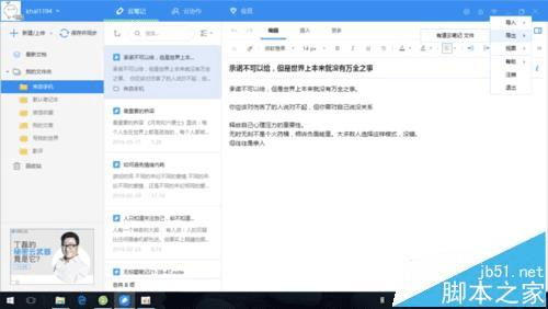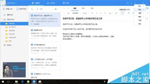 1、首先是导出印象笔记的存档,在选项里找到导出笔记选项。