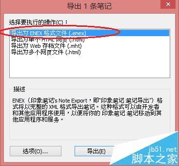 2、导出的格式选定为.enex。将导出的副本保存到电脑上备用。