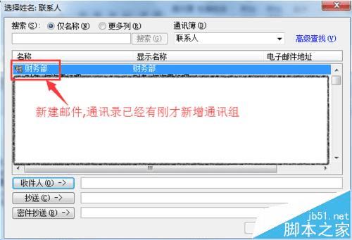 4、新建一封邮件,查看通讯录发现新建的分组名称已经存在,发送群体信息不用再点到手软了