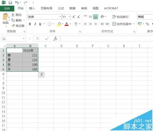 1、打开Excel工作表,选中要生成图表的表格数据。