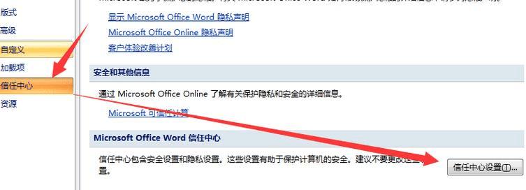 2、选择选项这里面的信任中心,选择信任中心中的信任设置