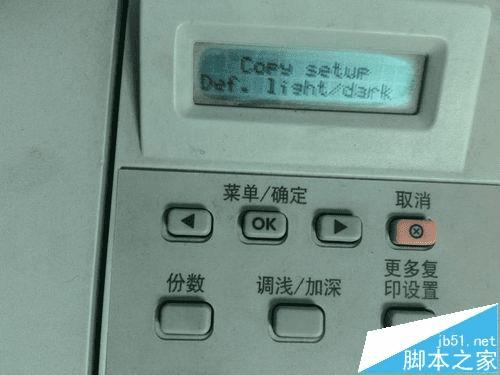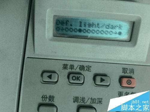 3、然后继续点“ok”出现如下图示,然后就可以根据自己的复印情况,用面板上的左右键调复印的深度,这个设置只对复印有效,打印的话,是默认的,没有办法调,设置完后,还需要点“ok”即可。以后不管关机还是啥的,都默认是这个设置了。然后可以用测试纸试下复印效果。