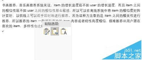 1、把内容复制后,在word中右击鼠标会出现下面图片所示内容,可以看到粘贴选项有三个选项,如果点击第二个“合并格式”或者第三个“只保留文本”,粘贴的内容将没有背景色。
