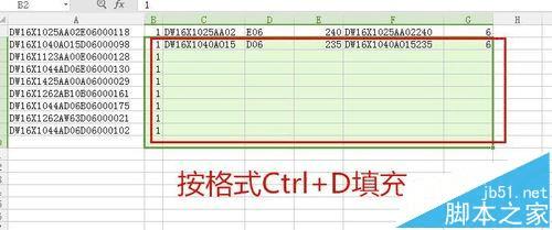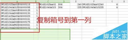 7、公式做好之后,只要将箱号复制到第一列,可以不写箱号后面的1,正常情况下,后面就会出现对应的散鞋,如果没有出现,选中空白区域的上方一行,Ctrl+D填充你的单元格,出现完整的结果。