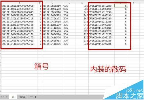 2、箱号的13-16位为规格,取值规格,C06、D06、F10...等,前一位字母代表的是里面装箱的鞋的起始尺码,后面06是装箱的规格,06双装,有的是10双装。输入=mid(箱号,14,3),取值规格。