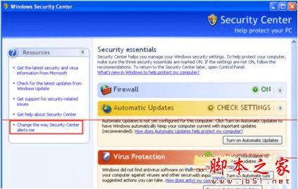 5、点击Change the way Security Center alerts me,打开警告设置设置窗口;