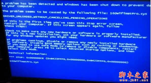 最近有用户在使用Win7系统的时候遇到蓝屏的问题,(可能是开机时,有些在使用中),蓝屏代码0x000000CE,错误文件160wifinetpro.sys具体如下图: