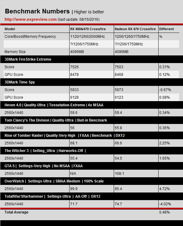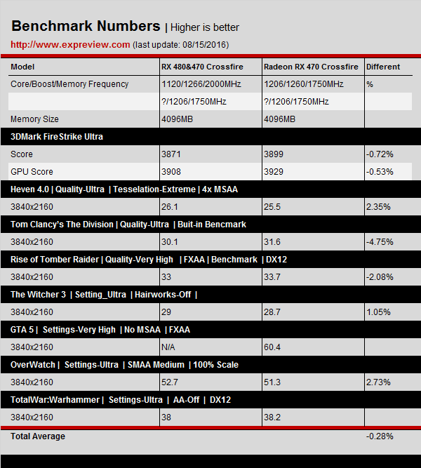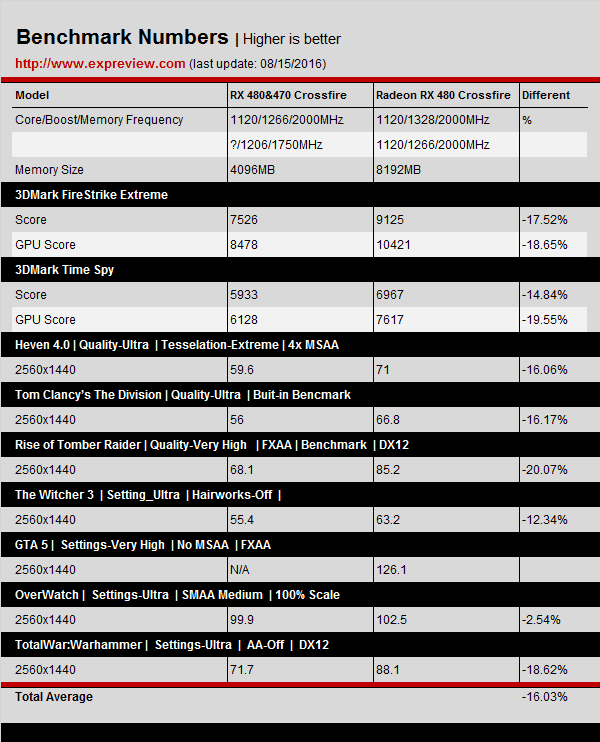 RX 480&470 CF vs.RX 480 CF:性能落后20%