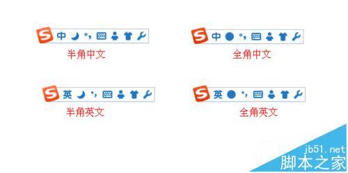 2、下面是全角和半角情况下,输入法的状态及打印出来的字符状态。