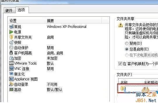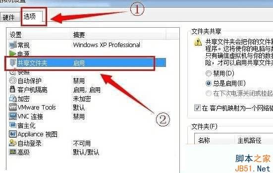5、完成后在“虚拟机设置”界面我们就可以看到在文件共享界面看到刚添加的磁盘或文件名,点击确定;