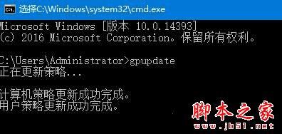 4、在命令提示符框中输入:gpupdate 按下回车键,等待提示更新完成,然后重启计算机即可。