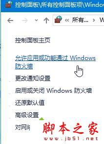 3、在左侧点击“允许应用或功能通过Windwos 防火墙”;