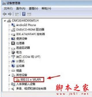 (2)打开后,如果在“网络适配器”或者“其它设备”选项下,WLAN有黄色叹号,基本可以判断是无线网卡驱动问题。