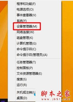 (1)鼠标右击Win8的“开始”按钮图标——>选择:设备管理器;