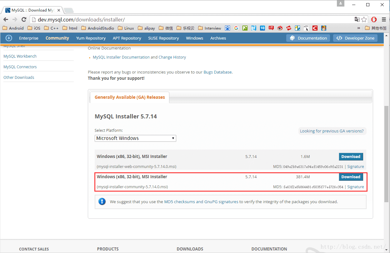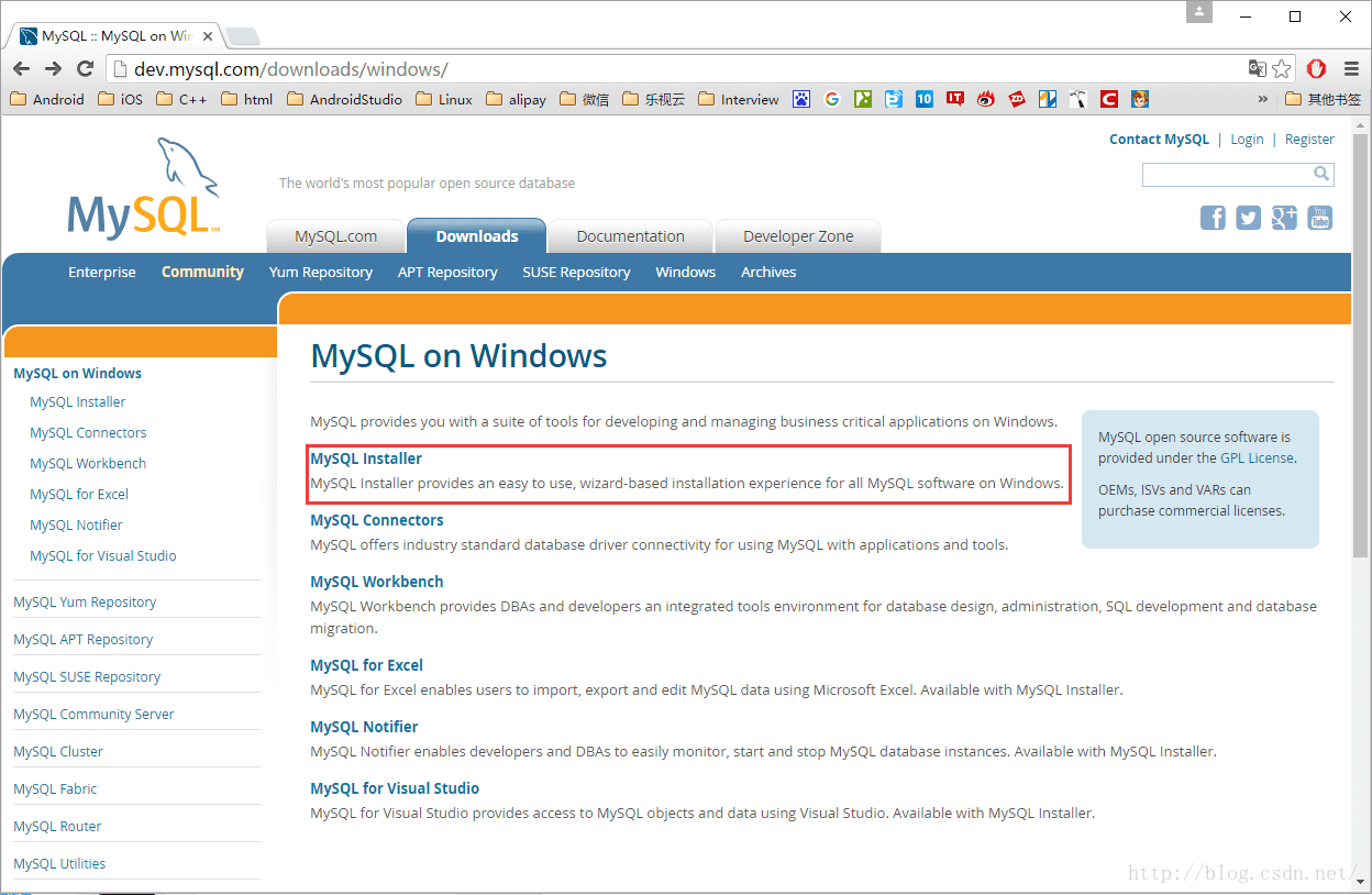 1. 在浏览器里打开mysql的官网http://www.mysql.com/