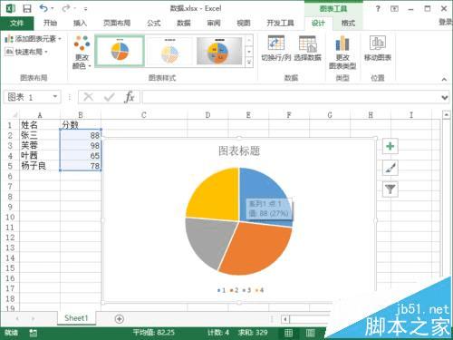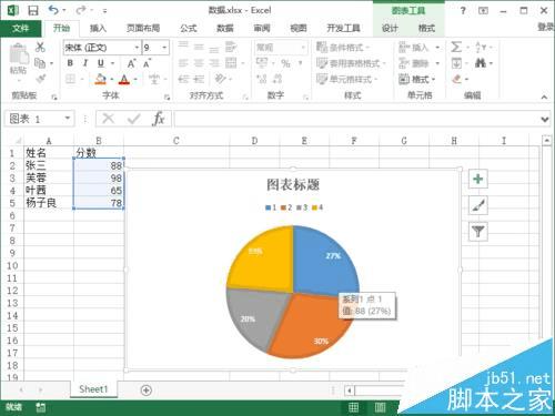 在Excel2013中将数据转换成饼图并显示百分比的方法