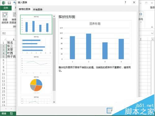4、点击“推荐的图标”选项后,这个时候会打开“插入图表”对话框。如图所示;