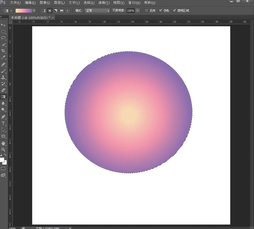 1、打开PS,新建一个空白文档,然后用“椭圆工具”在文档中画一个圆;