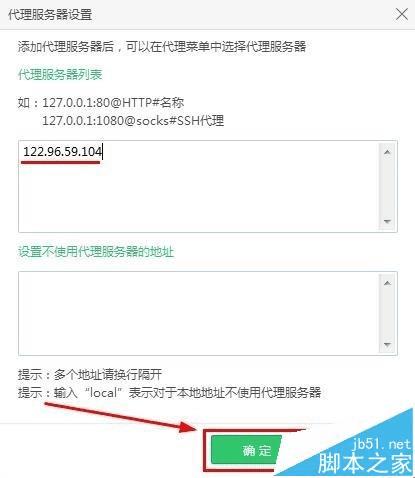 2、接着,在第一个输入框中添加122.96.59.104,然后点击下方的“确定”按钮。