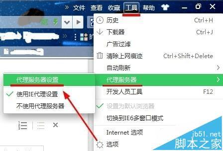1、设置一个有效的代理服务器,也是一个不错的解决方案,这里将以360浏览器为例。首先,点击浏览器右上角处的“工具”按钮,然后点击“代理服务器”中“代理服务器设置”一项。