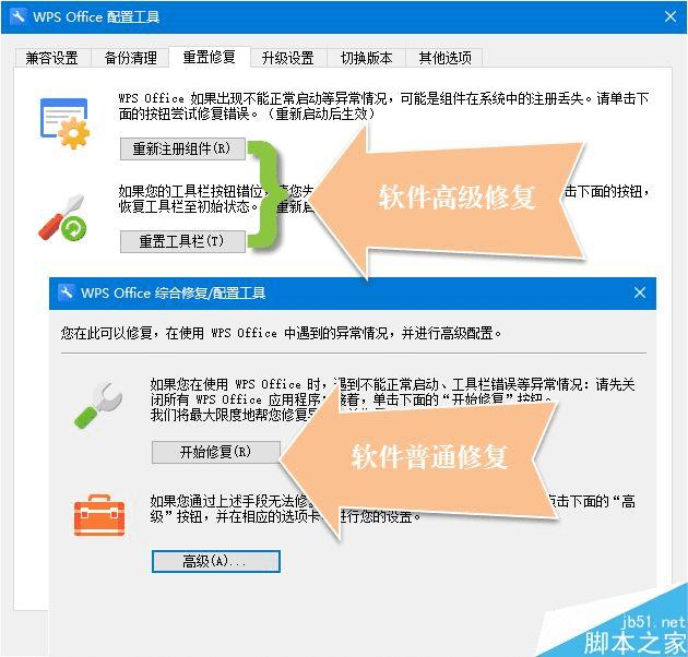另外,WPS还附带综合修复配置工具,可对软件本身出错进行有效修复。