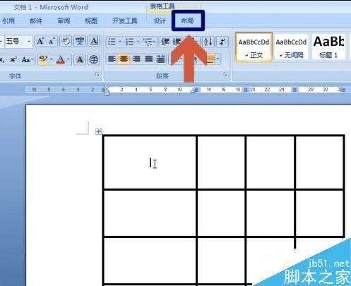 步骤二:先在表格内点击鼠标,点击后word菜单栏会出现“布局”按钮。