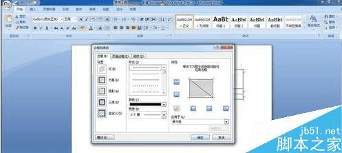步骤三:我们点击边框和底纹选项后,出现对话框,我们就可以看到如图圈起来的斜线了