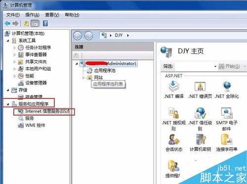6、之后点击服务和应用程序-Internet信息服务(IIS)管理器,打开iis管理器,可以在里边新建网站等后续工作。到这里,iis环境部署完毕,win7部署iis是不是很简单呢?