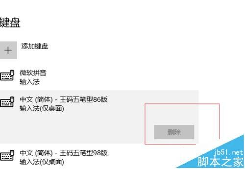 3、找到五笔型之后,发现删除按钮是灰色的,那我们应该怎么删除它呢?