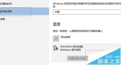 2、然后我们点击语言首选项,选择区域和语言,点击选项。