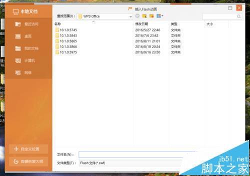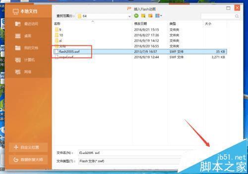 6、在插入Flash对话窗口中,找到事先准备好的Flash计时动画,并点击“打开”按钮。如图所示;
