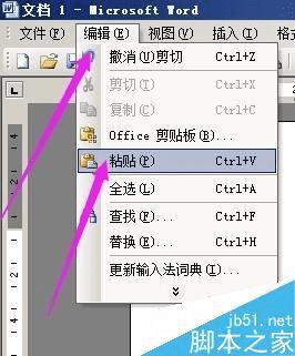 3、也可以这样操作,在文档上方的菜单栏中点“编辑”再点“粘贴”。