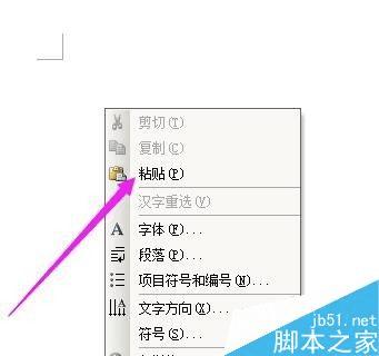 2、打开word文档,然后,鼠标右键点下,在弹出的菜单中点“粘贴”