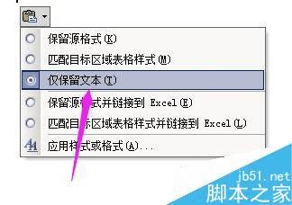 点下三角形,弹出下拉菜单中点“仅保留文本”