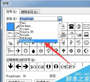 3、这地方的三角形里面包含了很多的种类,可以一个一个去打开看都不一样,我这里选择的图案在wingdings里面,就选择wingdings