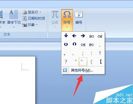 2、选择插入栏中最后面的符号按钮,这上面已经记录了有使用过的图案,如果这里有就直接选择,如果没有就点选择其他符号按钮。