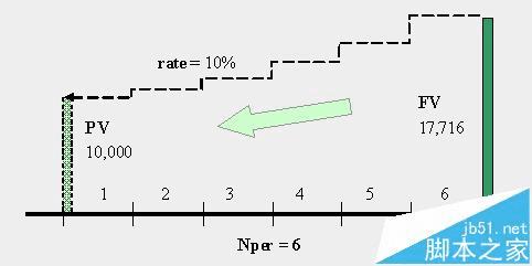 4、PV()函数,present value,返回投资的现值。就是未来之一笔金额经过一段时间以复利折现(Discount)后,相当于现在的货币价值。简单举个例说,若利率为5%,5年后的100元,经过折现后相当于现值78.4元。