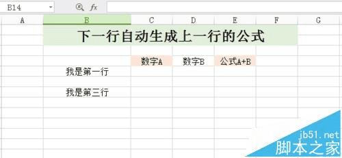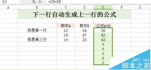 1、本文以最简单的“加法运算”解释如何将上一行的公式运用到下一行。创建excel表如下图,有第一列第二列以及各种数字和求和方式,如下图。