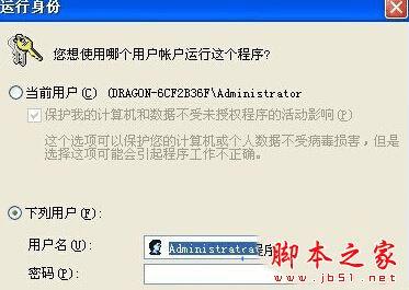 6、然后选择用那个用户启动此程序,选择Administrator;