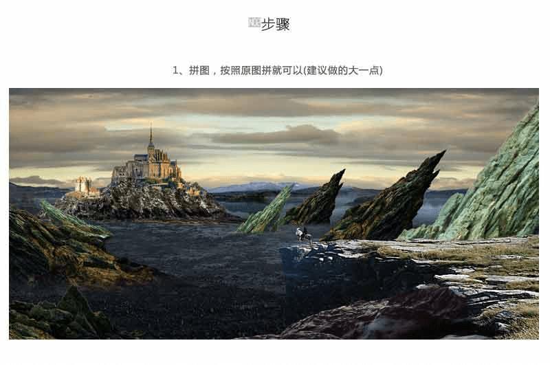 如何在Photoshop中合成骑士站在山间瞭望城堡的场景?